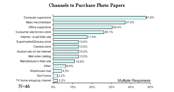 調(diào)查機(jī)構(gòu)發(fā)現(xiàn):用戶購買照片墨水和介質(zhì)的渠道有較大區(qū)別,雖然電腦超市都是用戶最常去的場(chǎng)所,但墨水的銷售很多是通過Internet和大型超市實(shí)現(xiàn)的,而介質(zhì)通過Internet網(wǎng)的銷售方式僅排第5位,大量用戶選擇在大型超市、辦公品商場(chǎng)購買。用戶選擇在辦公品商場(chǎng)購買墨水的比例僅占9.3%。上述區(qū)別的原因可能是:用戶對(duì)墨水品質(zhì)保證的關(guān)注程度高于介質(zhì),顯而易見相比于介質(zhì),墨水對(duì)打印機(jī)可能能造成更大的傷害。