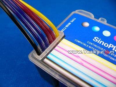 這是目前無海綿連續供墨系統最理想的走線方式,設計為一體,接頭在墨盒表面蓋子的下面,美觀大方
