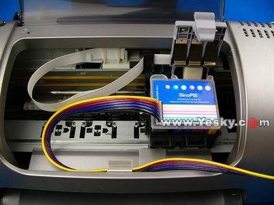 通過這樣的設計,可以使用墨盒所帶的原裝的墨盒蓋,這樣使得系統的穩定性進一步提高,另外這種走線也可以讓打印機的蓋子蓋上有效的防塵,提高打印機的使用壽命和打印質量